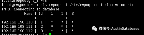 repmgr -f etc/repmgr.conf cluster matrix