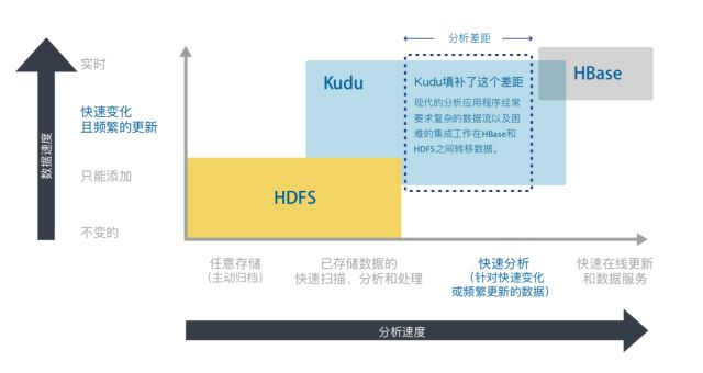 Kudu 通过将快速摄取数据的能力与对这些数据进行广泛分析扫描的能力相结合,填补了原有 Hadoop 存储层之间的差距。这种本地 Hadoop 存储引擎提供了一个充分利用新一代硬件的简化数据架构。消除了创建复杂 Lambda 架构的障碍,Kudu 可以更轻松地发布新的实时分析应用程序,并支持分析工作负载所需的全面更新功能。
