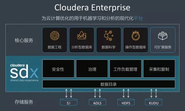 Cloudera SDX(共享数据体验)是一个功能强大的软件框架,使多功能数据应用的开发更容易、部署更快、成本更低、也更安全。通过应用驻留在持久对象存储中(而不是瞬态计算节点)有状态的、集中的、一致的数据上下文服务,SDX 可以令数百个不同的工作负载在共享或重叠的数据集上运行。