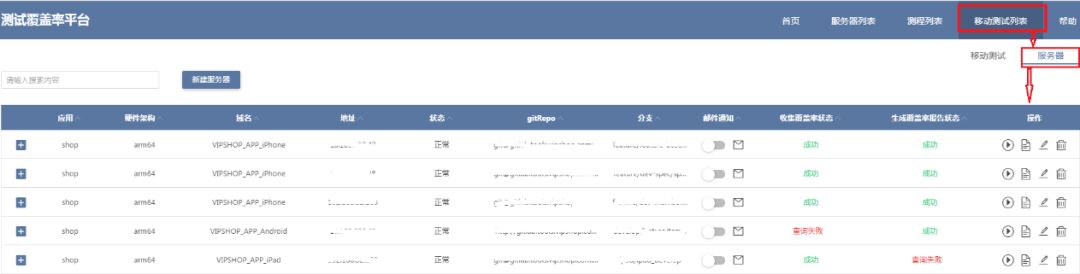 图10: 移动测试列表服务器管理