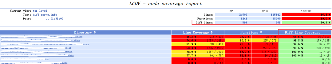 4) 待预处理完毕后,覆盖率平台可生成合并的或差异的覆盖率报告;