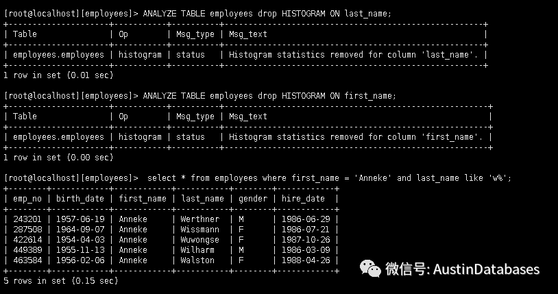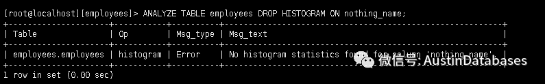 ANALYZE TABLE employees drop HISTOGRAM ON first_name;