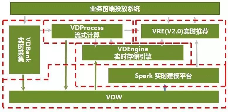 对此唯品会精准推荐系统第三代架构引入采用VDProcess版本的流式计算,推荐引擎也进行了升级,整个架构变成离线方式,变成半实时和实时预测的综合体。