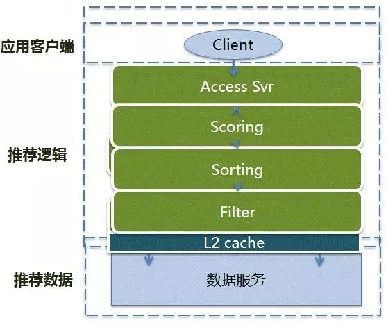 精准推荐第二代架构,增加了实时接入,利用API或提供接入的工具,把数据实时回炉到系统,并引入流式计算。比如感知广州市某一个20-30岁用户在5分钟之前对哪些东西进行了点击,就把它写到缓存,完成数据的实时接入。