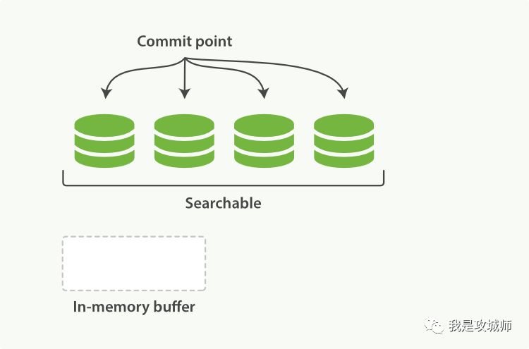 (4)然后经过一段时间filesystem cache中的segment会被fsync到磁盘文件上并在commit point文件中记录新segment文件名称,同时新的segment会被打开确保搜索可见
