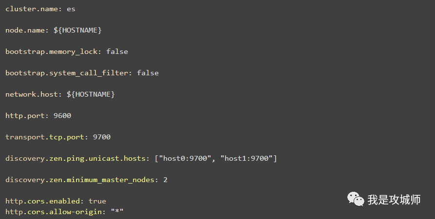 (3)进入根目录,修改config/elasticsearch.yml文件,清空内容,添加如下配置