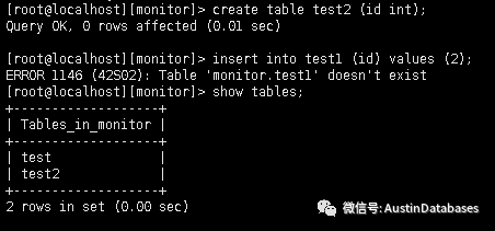 1 举例,为了管理mysql 方便,我们在每台MYSQL 上建立管理库monitor
