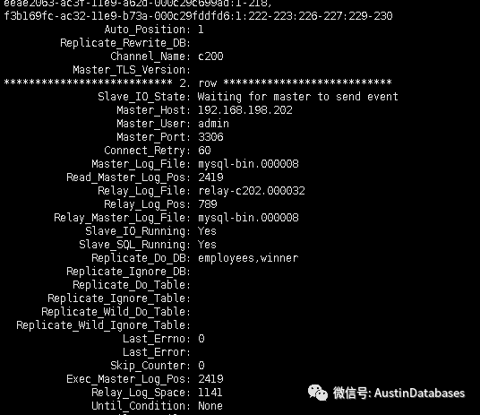 CHANGE MASTER TO MASTER_HOST='192.168.198.202', MASTER_USER='admin', MASTER_PORT=3306, MASTER_PASSWORD='XXXX', MASTER_AUTO_POSITION = 1 FOR CHANNEL 'C202';