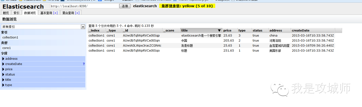 SearchResponse sp=client.prepareSearch("collection1")//检索的目录