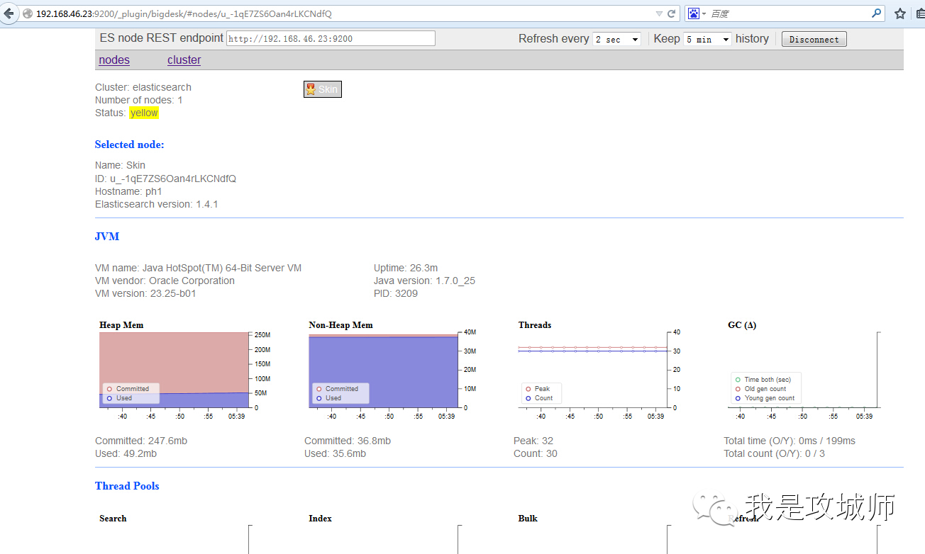 bigdesk的http访问地址:http://192.168.46.23:9200/_plugin/bigdesk/ ,截图如下: