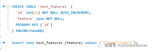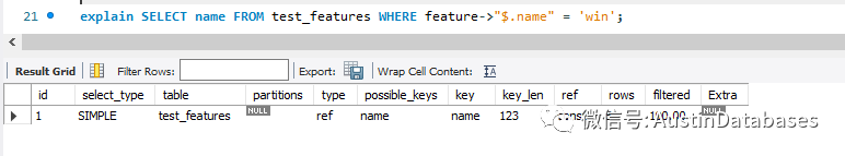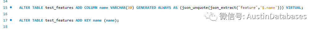 我们针对表test_features 建立一个虚拟列,绑定上面表中的JSON 列,