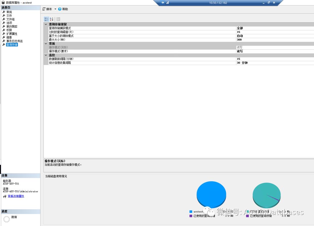 2 点击你要记录慢查询日志的数据库-- 右键属性-- 查询存储 (query stone)