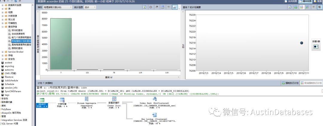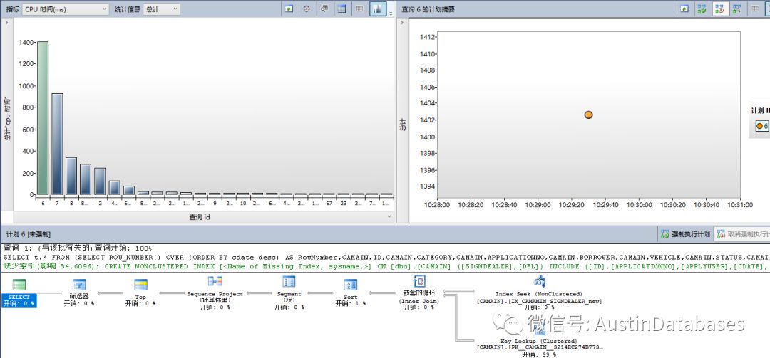 直接去点击我们上面图中占用CPU时间最多的矩形即可,点击后立即我们就可以发现到这条语句缺少索引。