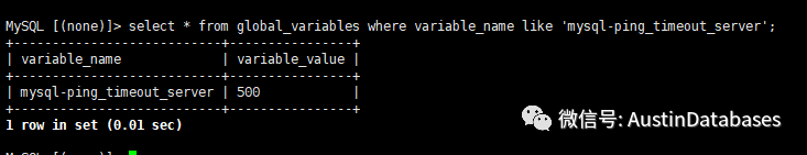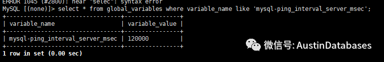 而proxysql 中的连接池也是保存空闲连接的,而多长时间PROXYSQL 会进行一个ping 保持与MYSQL之间的连接,的时间是通过 mysql-ping_interval_server_msec 来进行。