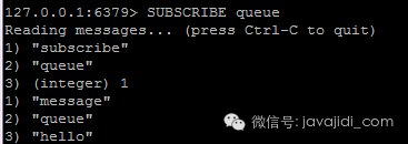 为了订阅queue这个频道,客户端发出一个订阅频道的命令: