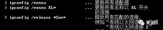 在cmd中可以使用ipconfig ?查看各参数的含义:
