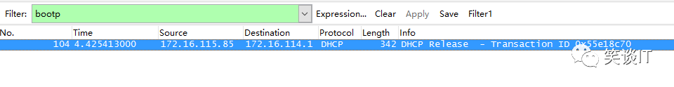 (1)在Wireshark中点击start开始抓包,在过滤栏输入bootp,使其只显示DHCP数据包。