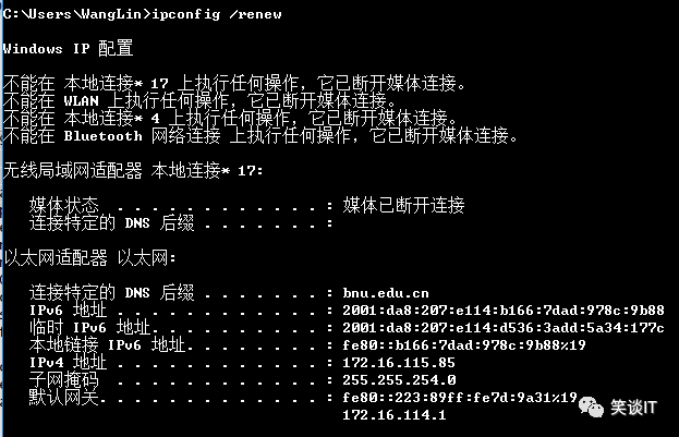 (3)在cmd中输入ipconfig renew 请求网络连接。