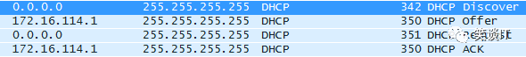 可以看到Wireshark中新增了3个数据包:DHCP ACK;DHCP Request;DHCP ACk。