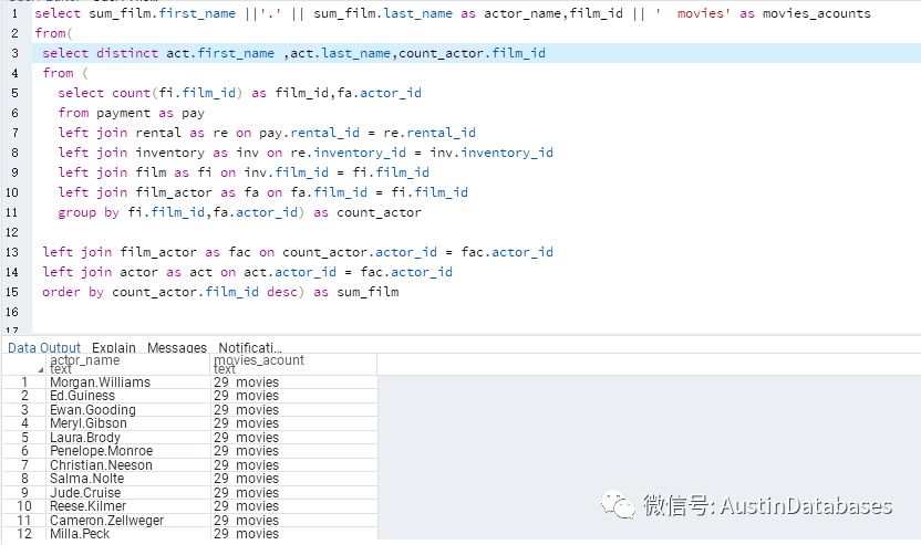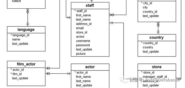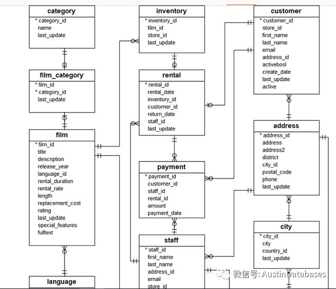 下面是一个实例的数据库,是一个DVD租借的公司的数据库案例