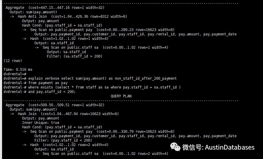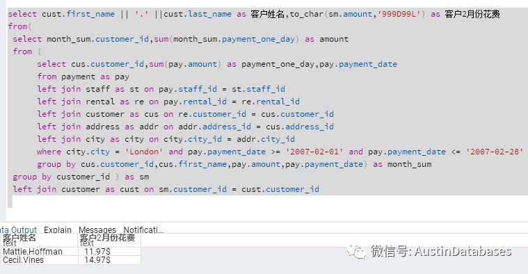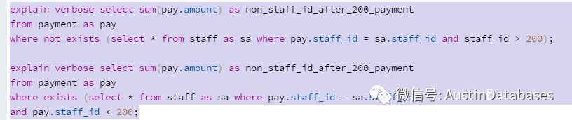 下面这两条语句的结果是一样的,执行计划基本上也是一样,但语句的写法是很不一样的。
