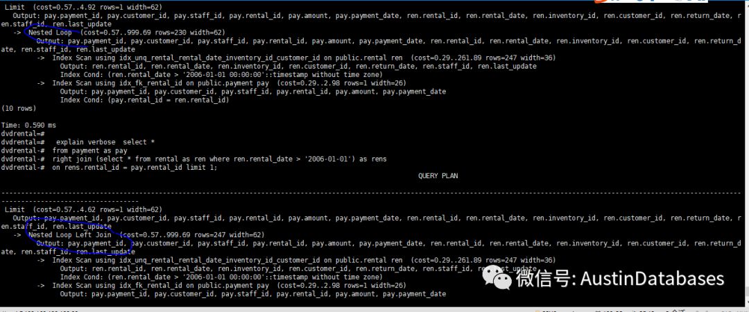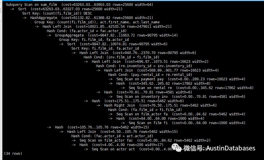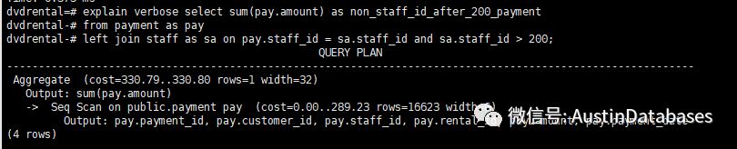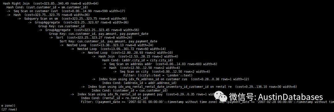 下面是这个查询的执行计划,可以从中看到POSTGRESQL 优化查询的方式也是多种多样的。查询时间在0.002432秒