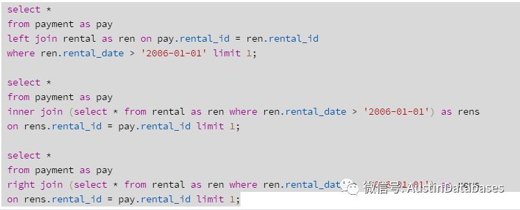 我们在换一个实验如果我们在join 中使用子查询,或者不使用子查询使用where条件后期排除数据那种方式更好