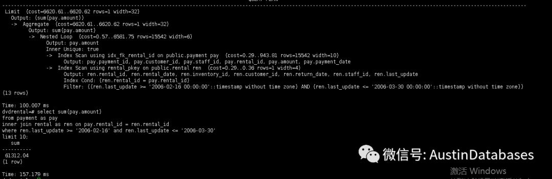 先将random_page_cost 调整到 10, 在还原seq_page_cost 的值,调整random_page_cost 值后,进行查询,发现查询的速度也有所加快,查询的计划并没有改变。