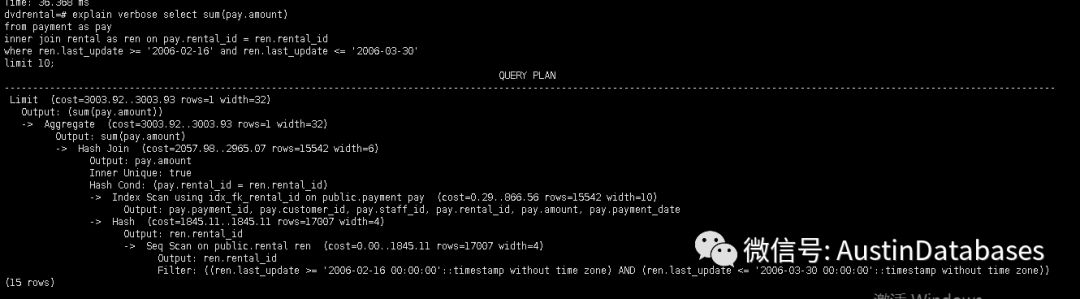 下面我们将seq_page_cost 的值调整到20 下面两个图从图中可以看到原来的执行计划没有改变但cost的值升高了好几倍,而相关的执行时间也变为0.162秒,是原来的10倍
