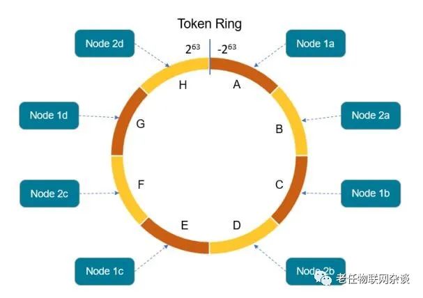 节点、机架和数据中心描述Cassandra集群的物理部署方式,“环”的概念通常用于解释数据的逻辑组织方式。Cassandra将一个集群管理的数据表示为环。会为环中的每个节点分配一个或多个数据区间或范围,由一个令牌描述,确定数据在环中的位置。