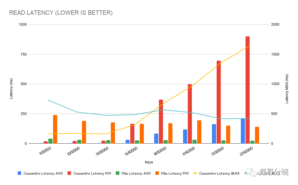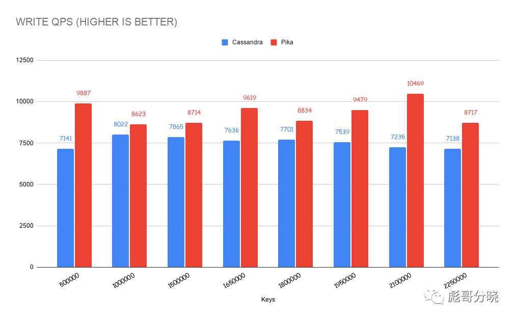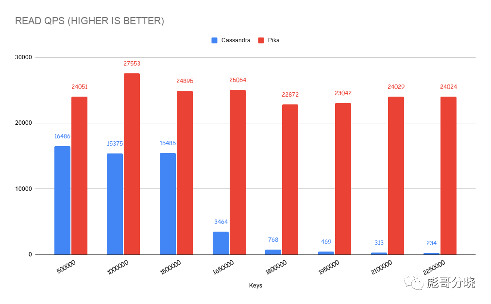pika性能远超cassandra,尤其是在数据量超过内存量之后仍然可以保持较高的读写性能。