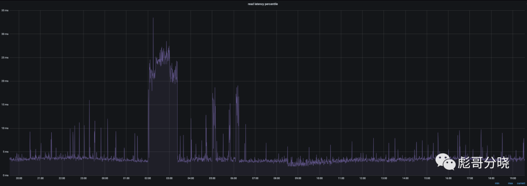 从图中可以看到云盘的监控图上有大量的毛刺而且毛刺还非常尖锐,高达500ms了,究其原因就是云盘总带宽限制(云上的虚拟机都有类似的限制)导致数据无法快速刷到磁盘导致的,相对在local ssd就会好很多,正常可以在10ms以内返回,及时是compact的时候也可以保证在50ms以内返回。