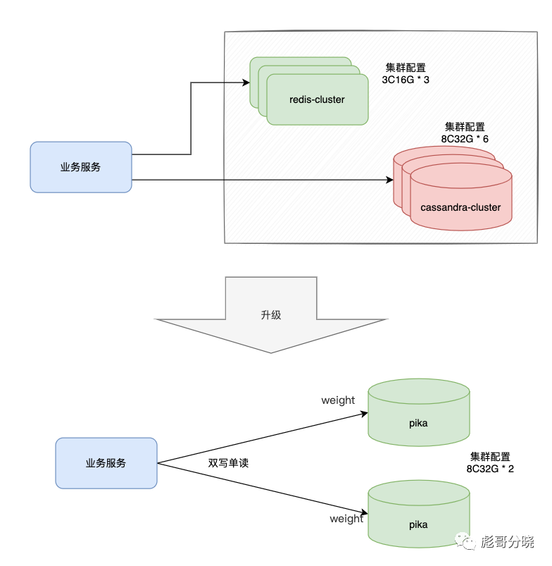 由 3台 4C16G 机器的redis集群 + 6台 8C32G的 cassandra 集群 替换为两台 8C32G的 pika双活集群。硬件成本降低了70%,运维人员的心智负担与运维成本也降低了好多。同时数据库吞吐量有了将近10倍的提高,延时降低至原先的20-30%。