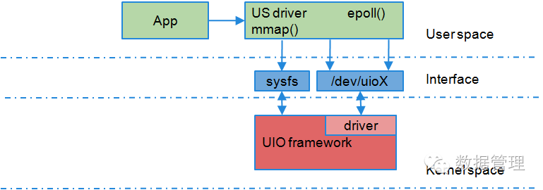 上面DPDK的数据包处理整个过程都是工作在用户态,不需要CPU介入,不仅节省了CPU中断,还节省了进程内核态和用户态的切换,所以会“节省”很多CPU资源。这样从理论上说起来其实也是好理解的,但是可能还是会觉得有违我们传统上的认识。《Linux Devic Driver》中有这样一句话,相比看过的都会影响深刻,“The most important devices can’t be handled in user space, including, but not limited to, network interfaces and block devices.” 。实际上就像我们前面说到的,这些都是在I/O设备性能迅猛提高的背景下,以及分布式系统的广泛应用、我们期望能在普通的x86体系下,达到媲美甚至超过传统存储系统的性能,而产生的技术变化。UIO模式下的IO栈变化: