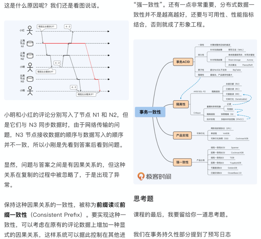 把学术的内容和工业界的实践联系起来,再落到具体的工作中,比如「技术选型」,还把分布式数据中的领头羊产品,比如 OceanBase 之类,做设计上的拆解,对比不同方案的优劣。