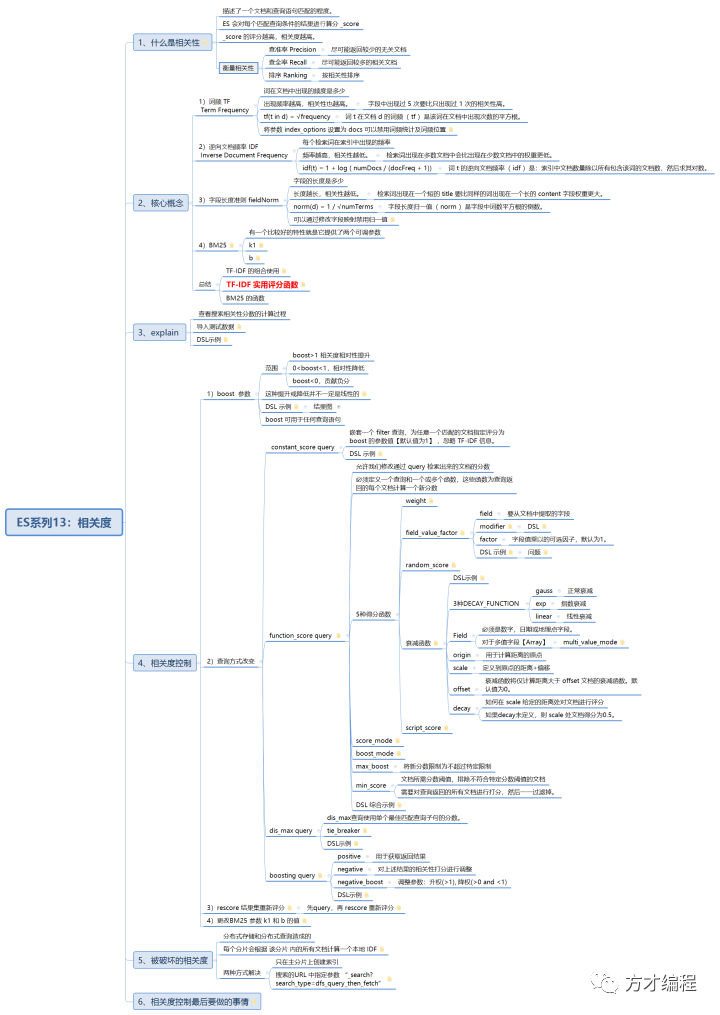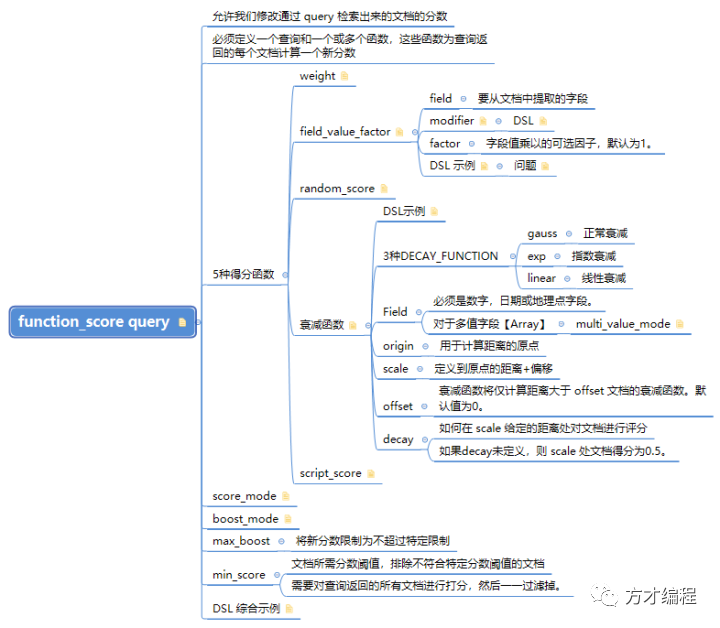 备注:function_score query 的用法非常多,适用场景也比较广,比如说:1)通过文档中的字段值影响相关度,比如可以让博客的点赞数越多,相关度越高;2)随机分数【可应用于千人千面】;3)根据距离参考值的衰减函数计算相关度,比如说地理位置查询,距离参考点越远的,相关性越低;4)更复杂的场景也可以用自定义脚本完全控制评分计算,实现所需逻辑。