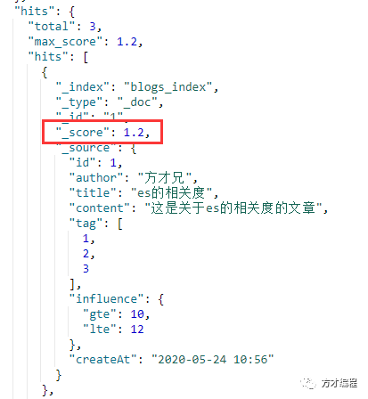 {"id":1,"author":"方才兄","title":"es的相关度","content":"这是关于es的相关度的文章","tag":[1,2,3],"influence":{"gte":10,"lte":12},"createAt":"2020-05-24 10:56"}