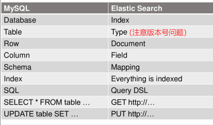 ES将数据存储于一个或多个索引中,索引是具有类似特性的文档的集合。类比传统的关系型数据库领域来说,索引相当于SQL中的一个数据库。