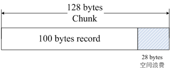 当Memcached接收到客户端发送过来的数据时首先会根据收到数据的大小选择一个最合适的Slab Class,然后通过查询Memcached保存着的该Slab Class内空闲Chunk的列表就可以找到一个可用于存储数据的Chunk。当一条数据库过期或者丢弃时,该记录所占用的Chunk就可以回收,重新添加到空闲列表中。从以上过程我们可以看出Memcached的内存管理制效率高,而且不会造成内存碎片,但是它最大的缺点就是会导致空间浪费。因为每个Chunk都分配了特定长度的内存空间,所以变长数据无法充分利用这些空间。如图 所示,将100个字节的数据缓存到128个字节的Chunk中,剩余的28个字节就浪费掉了。