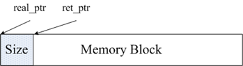 Redis的内存管理主要通过源码中zmalloc.h和zmalloc.c两个文件来实现的。Redis为了方便内存的管理,在分配一块内存之后,会将这块内存的大小存入内存块的头部。如图所示,real_ptr是redis调用malloc后返回的指针。redis将内存块的大小size存入头部,size所占据的内存大小是已知的,为size_t类型的长度,然后返回ret_ptr。当需要释放内存的时候,ret_ptr被传给内存管理程序。通过ret_ptr,程序可以很容易的算出real_ptr的值,然后将real_ptr传给free释放内存。