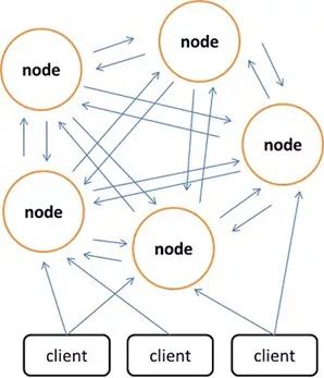 相较于Memcached只能采用客户端实现分布式存储,Redis更偏向于在服务器端构建分布式存储。最新版本的Redis已经支持了分布式存储功能。Redis Cluster是一个实现了分布式且允许单点故障的Redis高级版本,它没有中心节点,具有线性可伸缩的功能。下图给出Redis Cluster的分布式存储架构,其中节点与节点之间通过二进制协议进行通信,节点与客户端之间通过ascii协议进行通信。在数据的放置策略上,Redis Cluster将整个key的数值域分成4096个哈希槽,每个节点上可以存储一个或多个哈希槽,也就是说当前Redis Cluster支持的最大节点数就是4096。Redis Cluster使用的分布式算法也很简单:crc16( key ) % HASH_SLOTS_NUMBER。