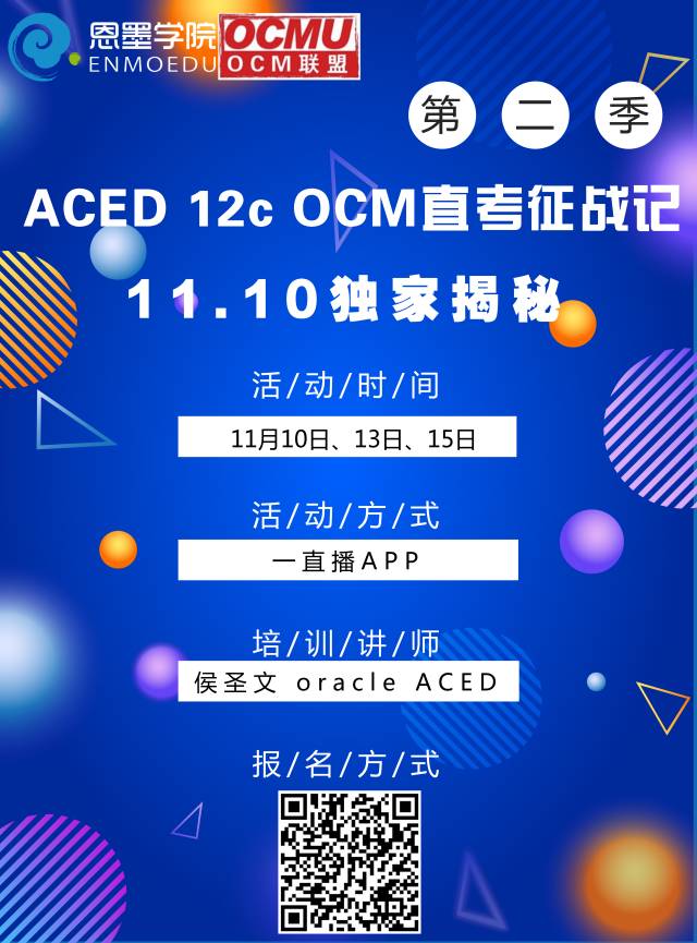 无人敢挑战的12c OCM直考,恩墨学院ACE总监侯圣文老师亲赴考场,独自一人面对考官,单挑12c OCM直考,完成考试。恩墨学院掌握12c OCM直考考题一手资料,让你“一次性”获取国际顶级认证。