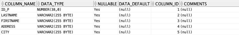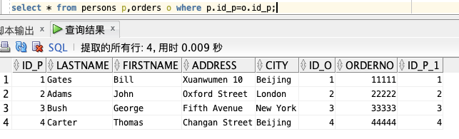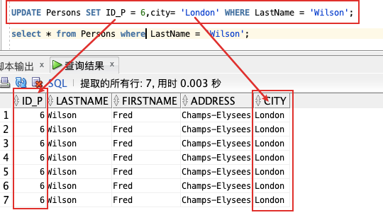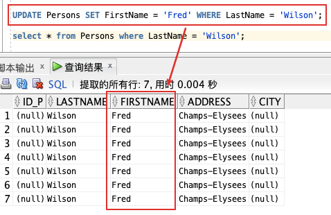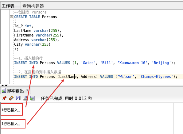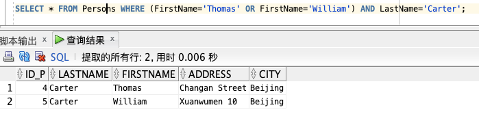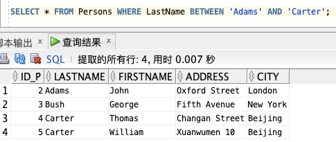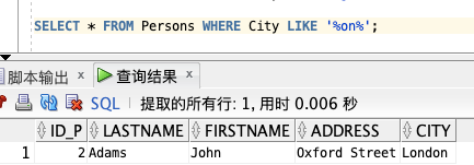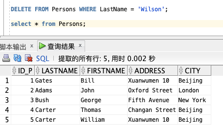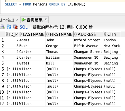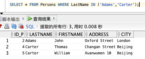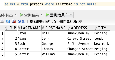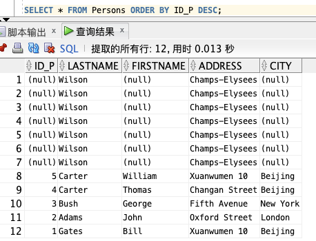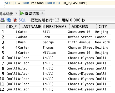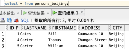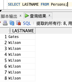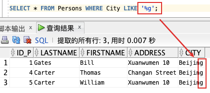 上面的表包含三条记录(每一条对应一个人)和五个列(Id、姓、名、地址和城市)。