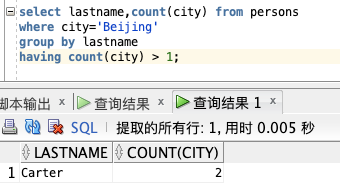 获取 Persons 表中住在北京的总人数大于1的 LASTNAME,根据 LASTNAME 分组: