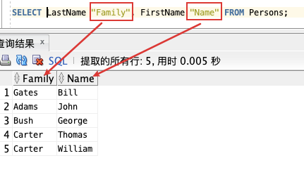 选取 “LastName” 和 “FirstName” 列的内容,然后把 “LastName” 列转换为大写: