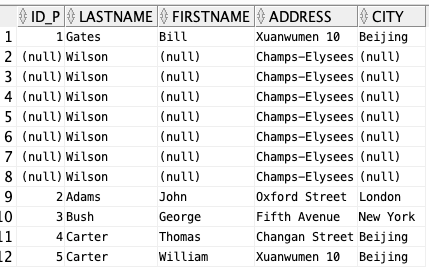 | 3 | Carter | Thomas | Changan Street | Beijing |