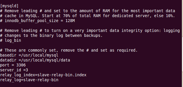 server-id=1 //给数据库服务的唯一标识,一般为大家设置服务器Ip的末尾号