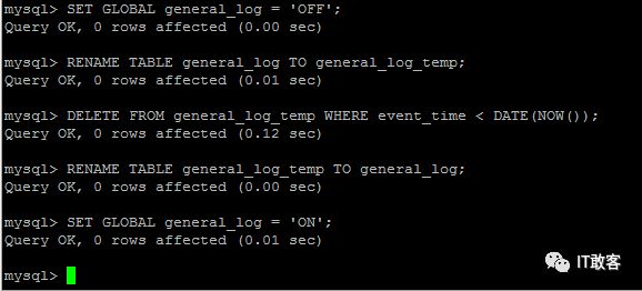 以 general log 为例,需要先关闭 general_log,然后重命名 general_log 这个表,