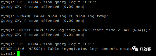 但是两者受 log_output 参数影响,输出的目标总是一致的,也就是要么都写入表,或者要么都写入文件,不会一个输出到表,一个输出到文件。这是因为他们都受 log_output 参数控制,这个参数只能是一个值!