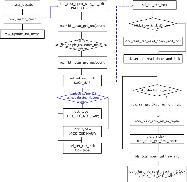 InnoDB update加锁分2个阶段,search阶段加锁和update阶段加锁,本图讲述search阶段加锁:
